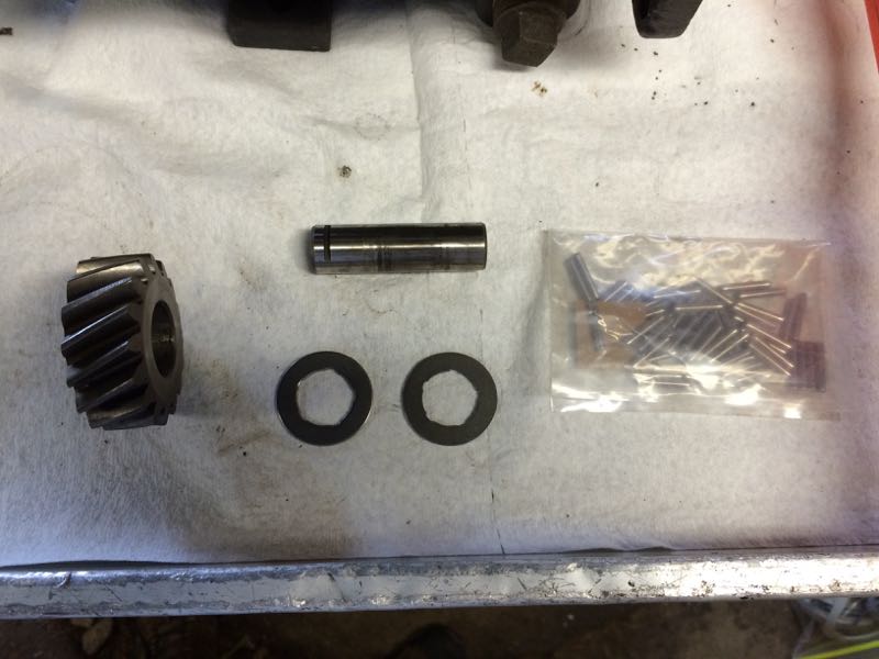 Reverse gear parts. Gear, shaft, bearing washers (2), and roller bearings (10)