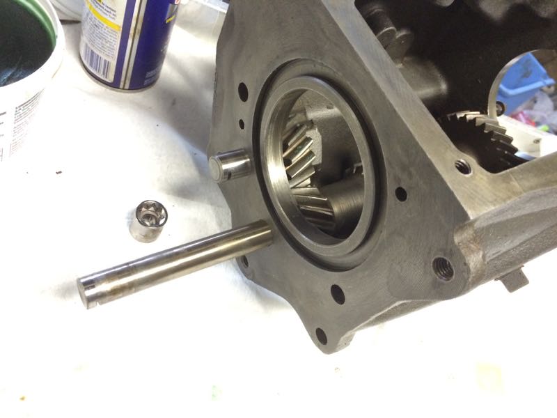 Set in the counter shaft, careful not to drop any roller bearings. Inster shaft slowly from rear toward the front.