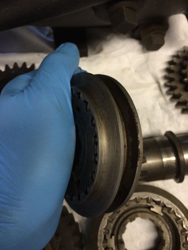 Old Selector gear. Some rust in the grove, but manual recomments replacing the selector if 1st or reverse is replaced — so I did.
