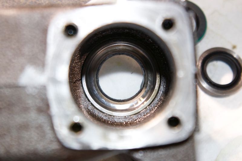 Input shaft, ball bearing cup/seat, pressed into the housing