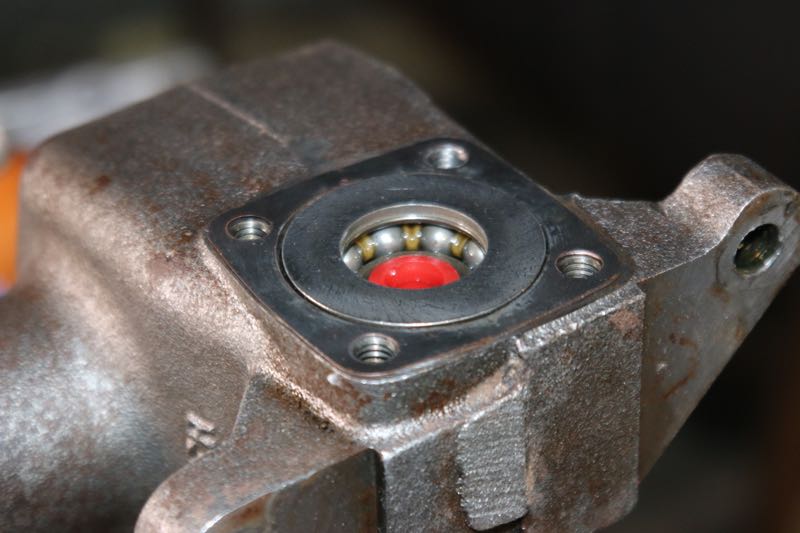 Add thrust washer and shims. (Note these shims have been coated in copper gasket sealant as they leaked slightly, even when torqued!)