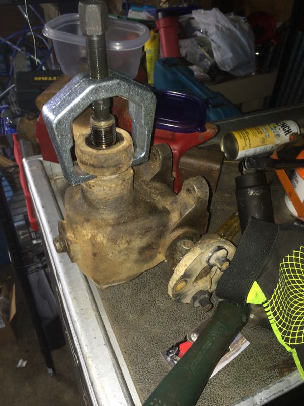 Use a puller and remove the steering arm (should be lightly pressed on)